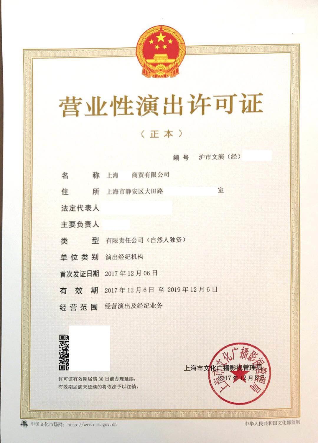 (五)3名以上專職演出經(jīng)紀人員的資格證明 (中國演出行業(yè)協(xié)會頒發(fā)的演出經(jīng)紀人資格證)原件、復印件及身份證復印件;